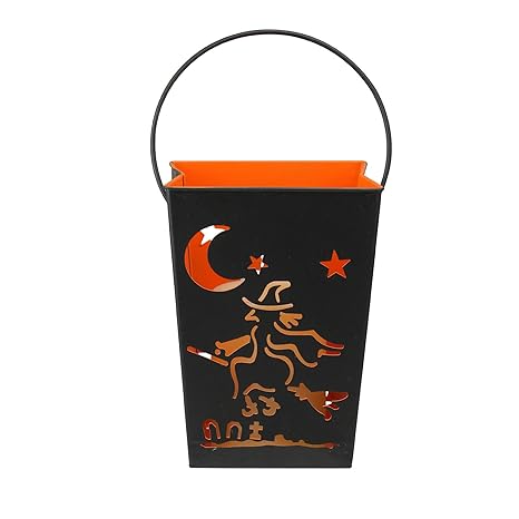 Melrose 7 Witch Flying On Broom Black Halloween Candle Lantern Luminary